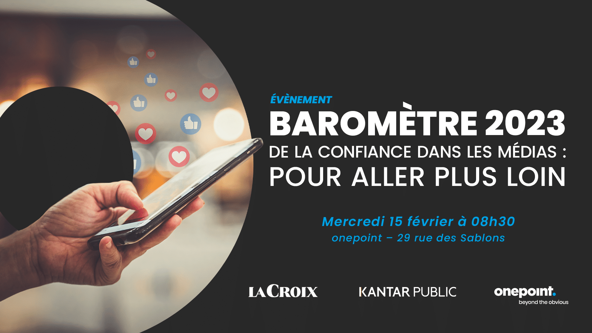 Onepoint, La Croix et Kantar Public sont heureux de vous convier à un petit-déjeuner exploratoire des résultats et enjeux de la 36ème édition du baromètre historique de la confiance dans les médias, le 15 février prochain au siège de onepoint.