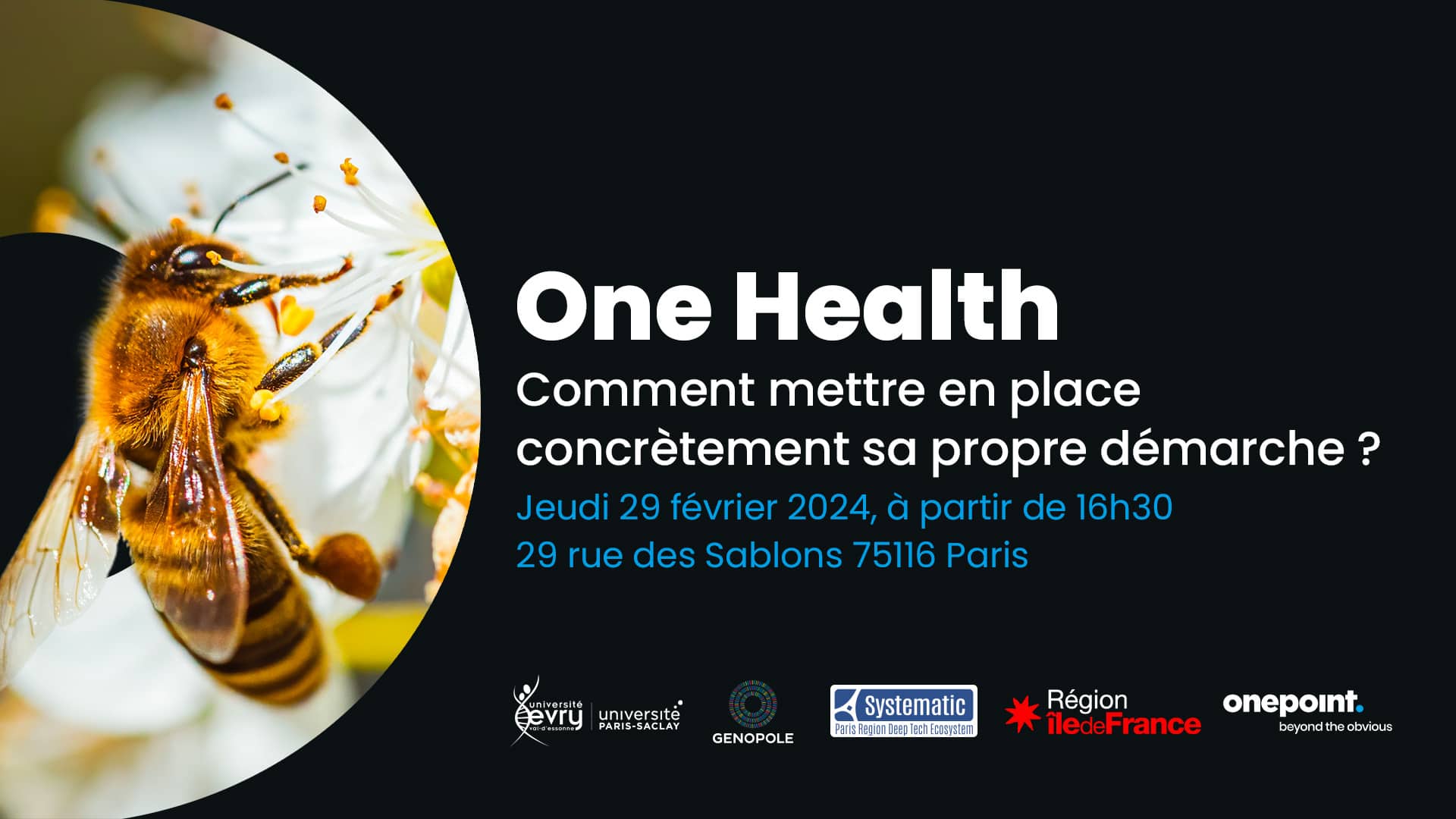 Nous vous invitons à explorer les leviers concrets pour façonner l’avenir de la santé humaine, animale et environnementale lors d’un évènement dédié à l’approche One Health, ou « une seule santé », co-organisé par Genopole, Systematic Paris-Region, l’Université Paris Saclay et Onepoint le 29 février 2024 à Paris.
