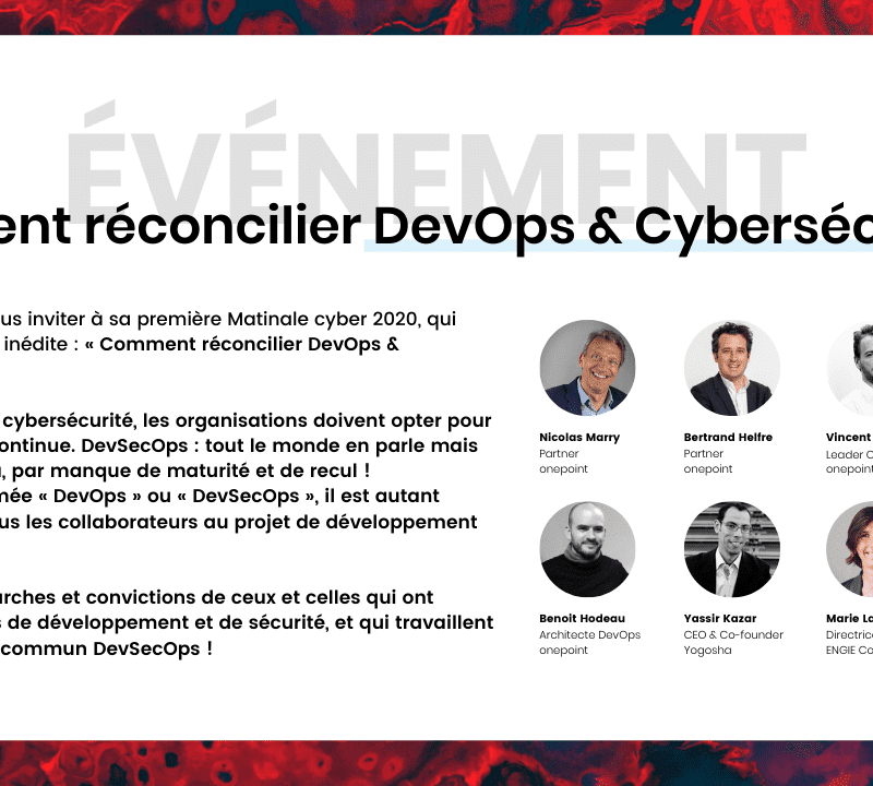 Onepoint a le plaisir de vous inviter à sa première Matinale Cyber 2020, qui abordera une thématique inédite : « Comment réconcilier DevOps & Cy