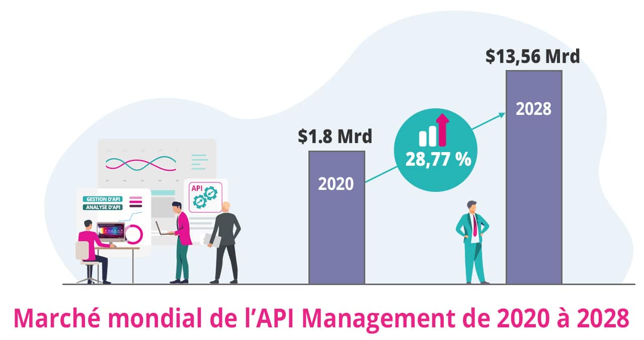 En effet, la taille du marché de l’API Management évaluée à 1,8 milliard de dollars en 2020 devrait atteindre un pic de 13,56 milliards de dollars d’ici 2028. Ce sont les transformations numériques des plateformes, des écosystèmes, des innovations et réglementations qui ont impulsés ce taux de croissance annuel moyen de 28,77 %.