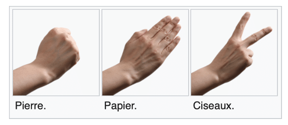 On suppose dans ce cadre que N joueurs sont en présence et que chaque joueur i possède un ensemble Ai d’actions possibles. Dans l’exemple ci-dessus N=2 et les deux joueurs possèdent les mêmes actions : pierre, papier ou ciseaux. L’issue d’un jeu est ici le choix par chaque joueur d’une action, on parle aussi de profil d’actions.