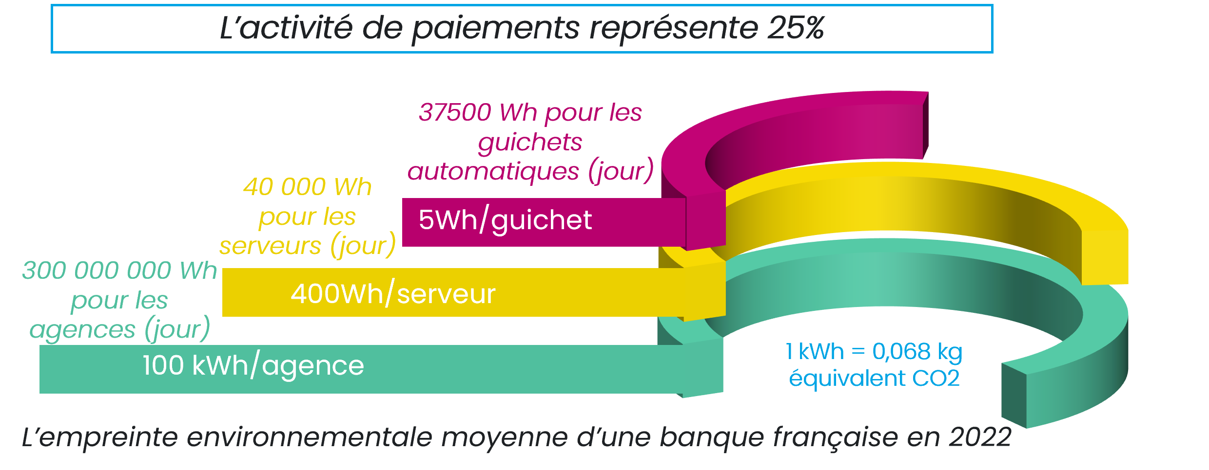 4 – Les infrastructures bancaires de paiements (guichets, serveurs et agences) représentent en équivalent CO2 un total de 7346 tonnes/moyenne/année [2]. Mais les transactions de paiement ne représentent que 15% de cette valeur annuelle.