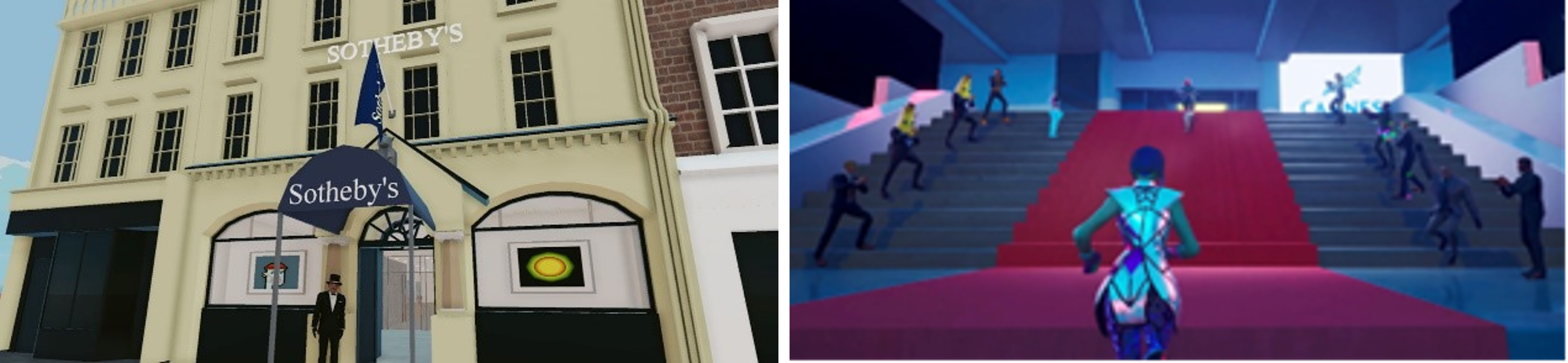 Réplique de l’immeuble londonien de Sotheby’s sur la plateforme Decentraland / Festival de Cannes et le Palais des festivals et ses alentours au sein de Fortnite